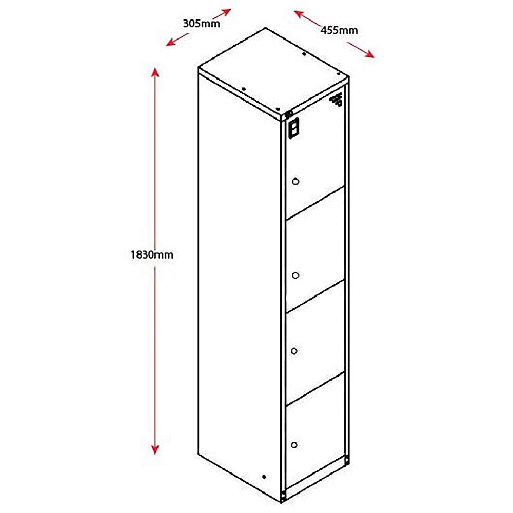 Rapidline Go Locker 4 Door 305W x 455D x 1830mmH White