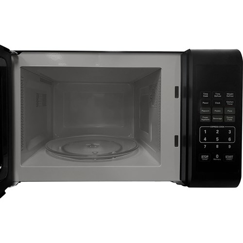 • Easy clean black conventional 23L microwave with LED display and grey interior, speedy one touch cooking and incremental power settings.