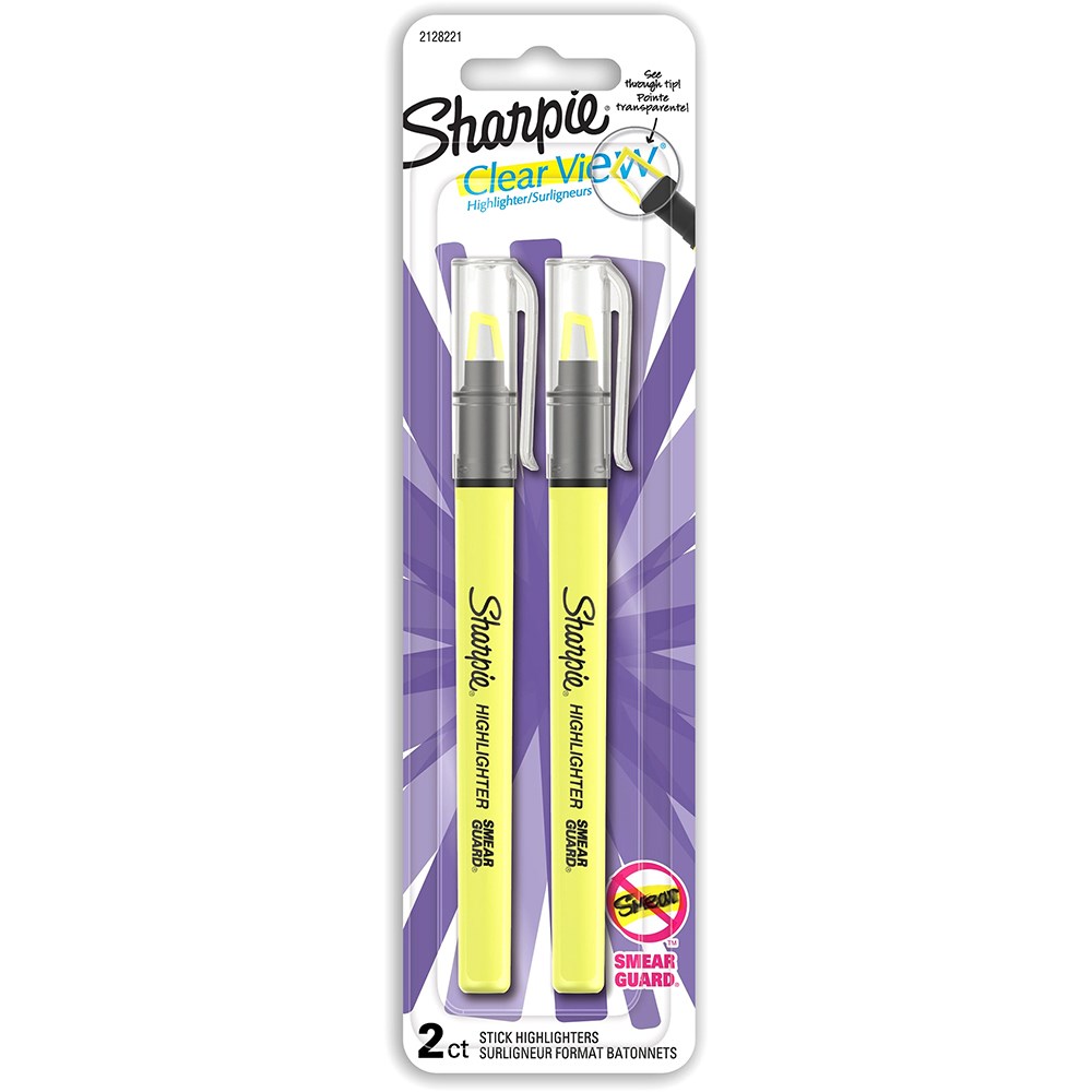 Sharpie Clear View Stick Highlighter Marker See Through Chisel Tip Yellow Pack of 2
