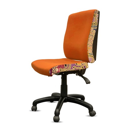 • A unique commercial fabrics designed by Paddy Stewart (Indigenous artist) combined with K2 Golden Orange Fabric to upholster the chair.