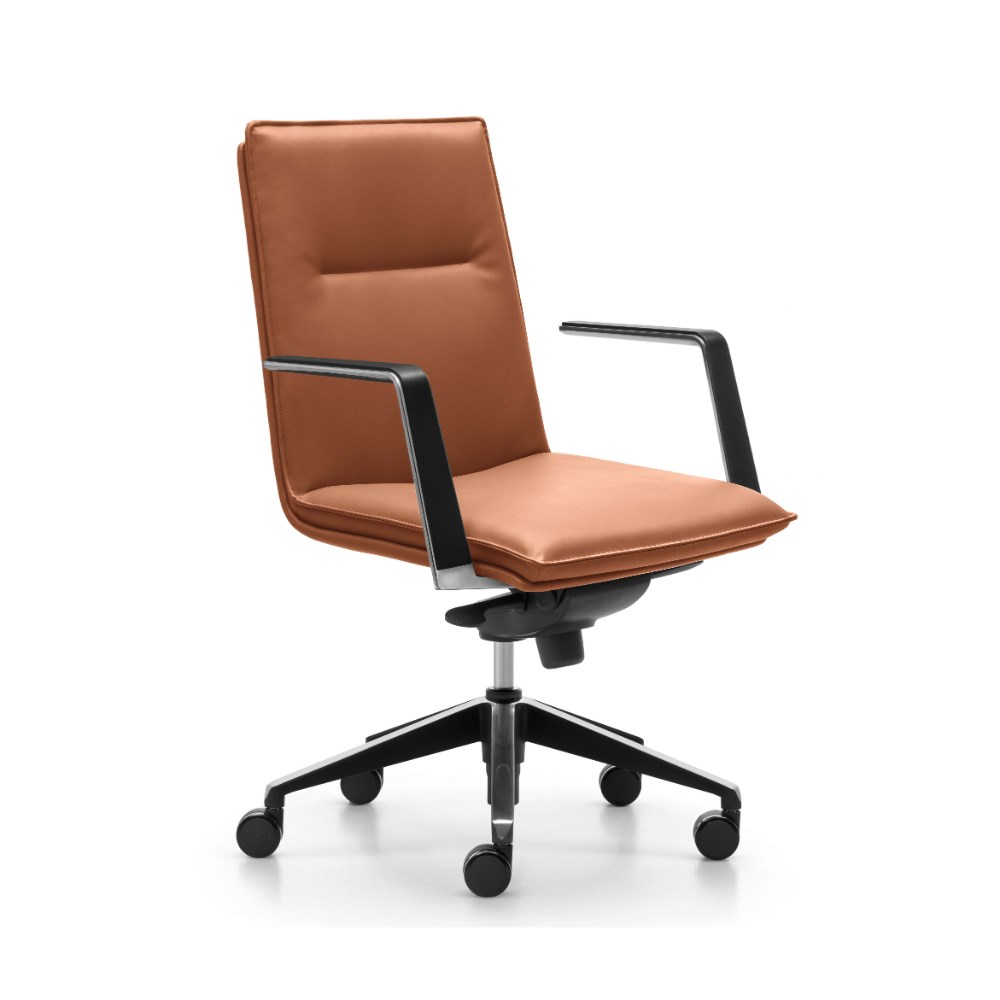 Rapidline Mirage Executive Chair Medium Back With Arms Tan Leather