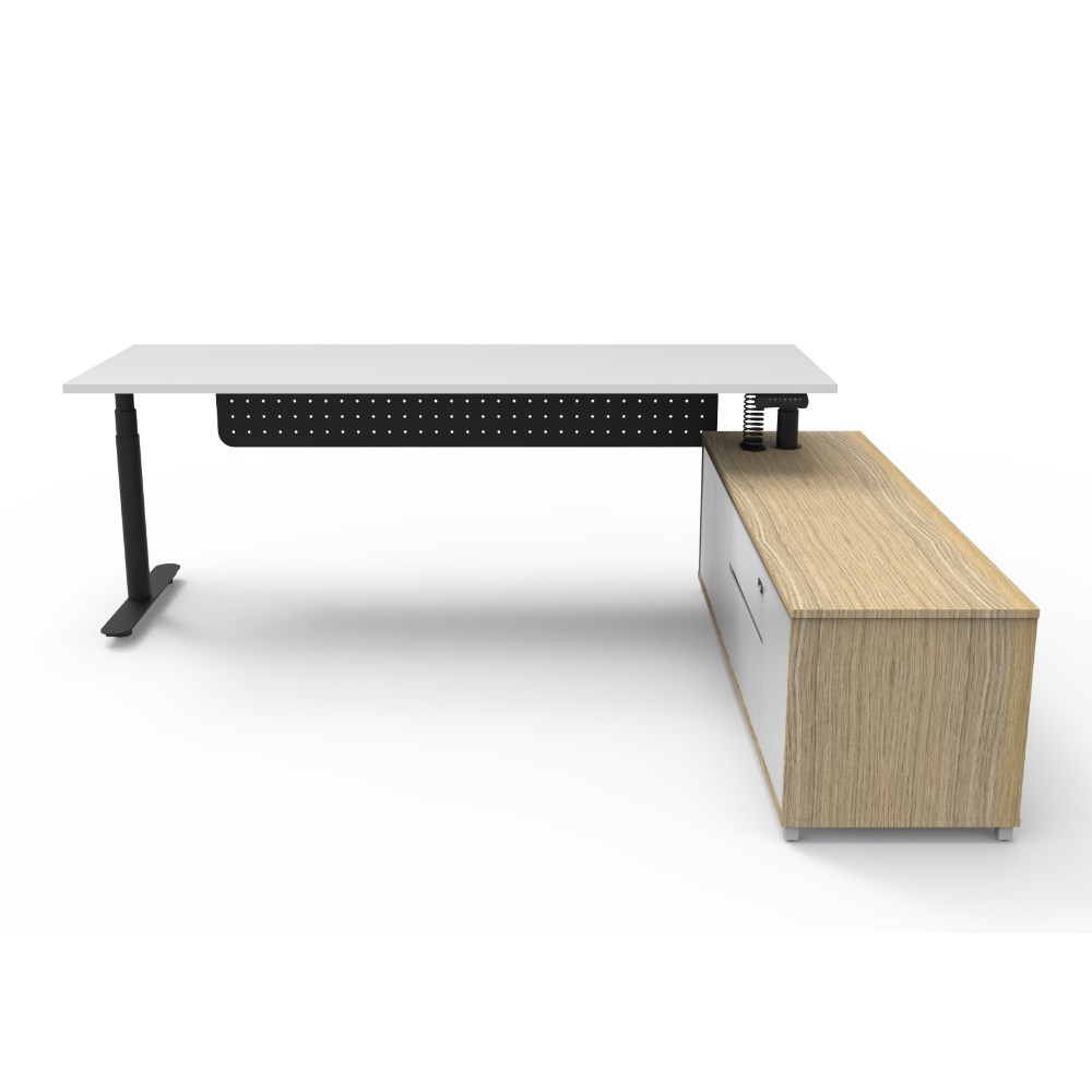 Rapidline Halo+ Executive Desk + RHS Cabinet + Panel 2270W x 1936D x 620-1270mmH White/Blk