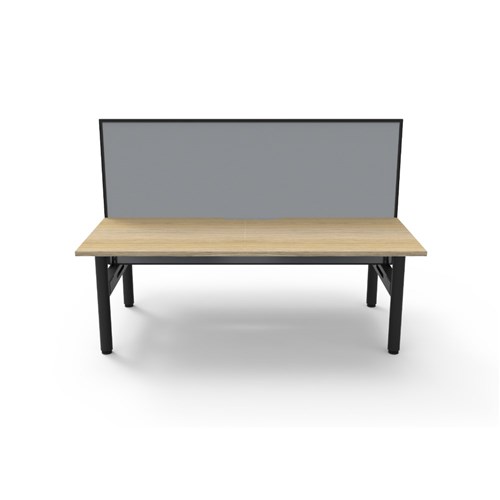 • Natural Oak top Black Satin frame. Double sided workstation with screen.