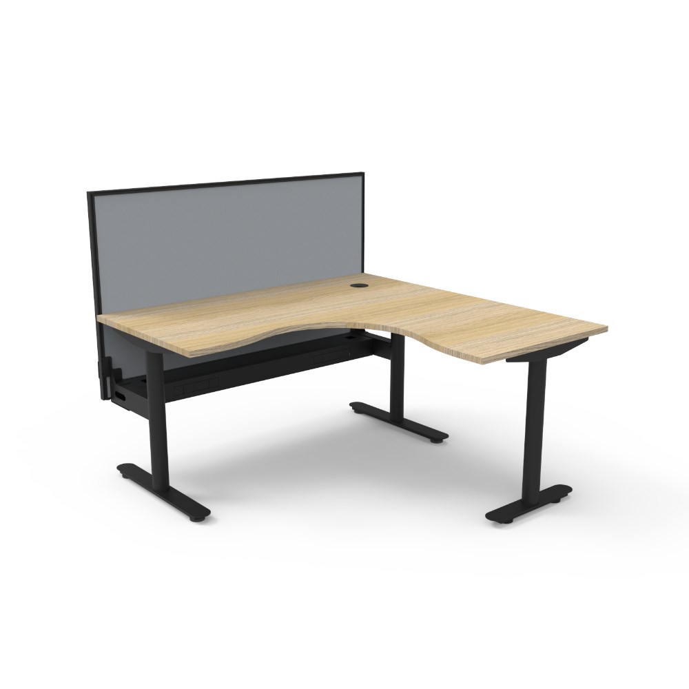Rapidline Halo Static Corner Workstation + Screen + Tray 1500/1500W x 1330mmH Oak/Black