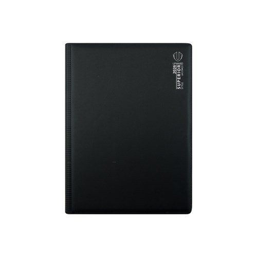 • Featuring a padded, phthalate free, PVC cover, pockets for storing business cards and wire-o binding to allow the diary to lie completely flat when open.