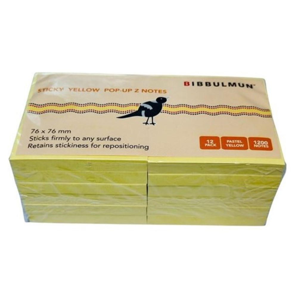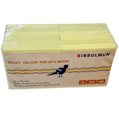 Bibbulmun Everyday Pop Up Z Line Sticky Notes 76 x 76mm Yellow Pack Of 12