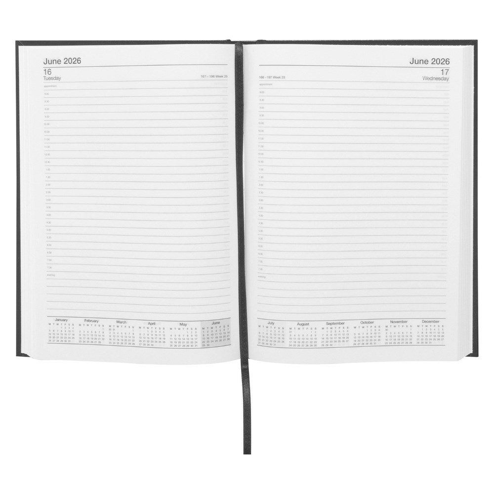 • Day to page layout diary to keep track of appointments, meetings, and other important events.