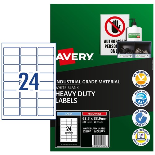 Avery Identification Removable Heavy Duty Laser White L4773 63.5x33.9mm 24UP 480 Labels
