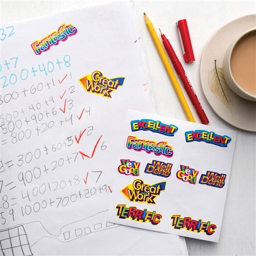 Avery Merit Stickers Multi Captions Shapes 18x30mm Assorted Colours Pack Of 120