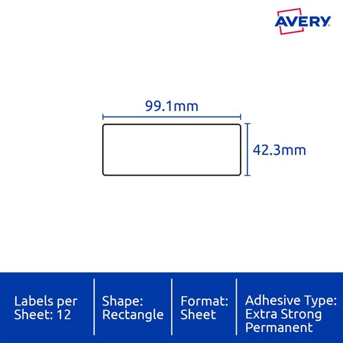 Avery Identification Laser Ultra Resistant White L7913 99.1x42.3mm 12UP 120 Labels