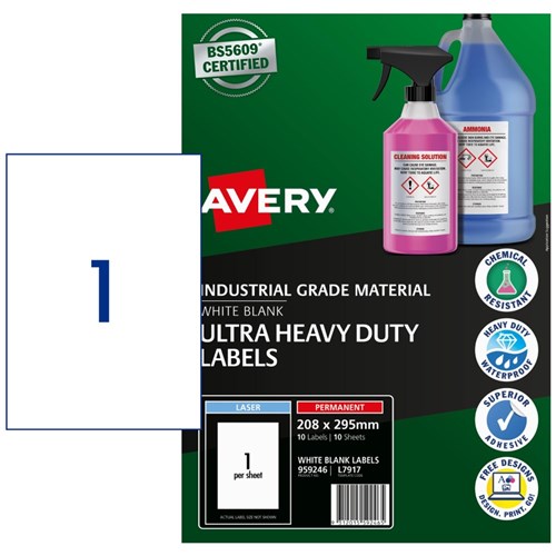 Avery Identification Laser Ultra Resistant White L7917 208x295mm 1UP 10 Labels