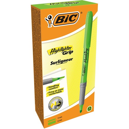 Bic Brite Liner Grip Highlighter Chisel Green Pack of 12