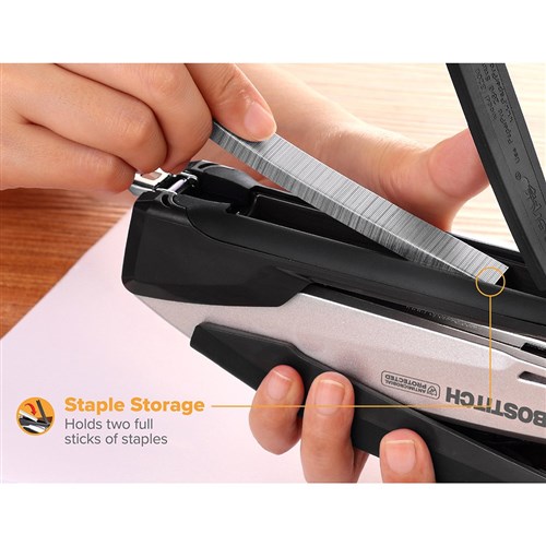 • Built-in staple remover and integrated staple storage compartment for added convenience.