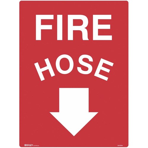 Brady Fire Sign Fire Hose With Arrow Down 450W x 600mmH Metal White/Red