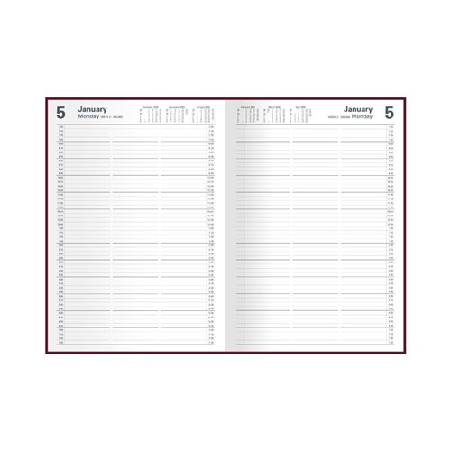 • Bound in a soft-look burgundy cover, section sewn for extra strength and with times printed clearly down each page.