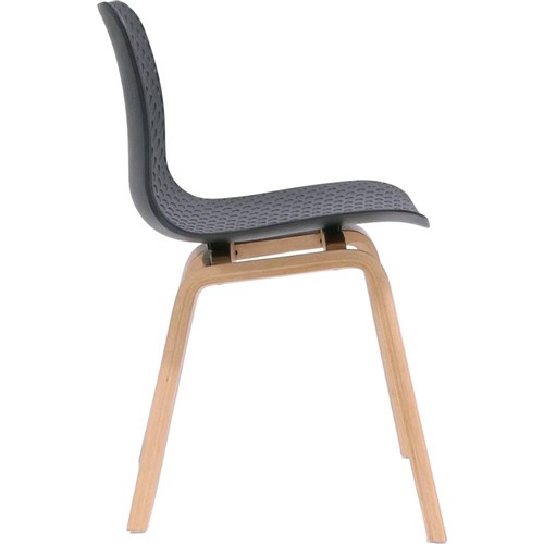 Rapidline Lucid Breakout Room Chair Light Oak Timber Leg Black Patterned Poly Shell