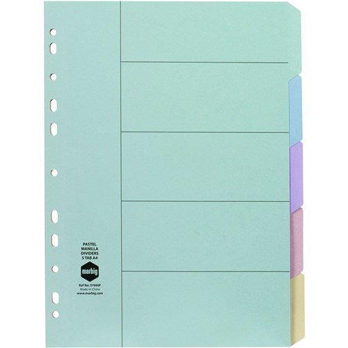 Marbig Manilla Indices & Dividers A4 5 Tab Pastel Colours