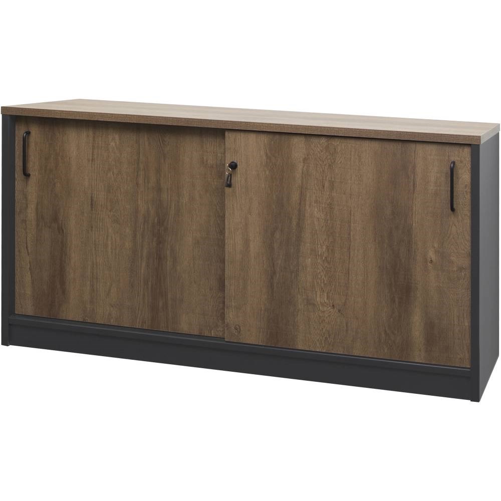 OM Premier Credenza Sliding Doors 1500W x 450D x 720mmH Regal Walnut And Charcoal