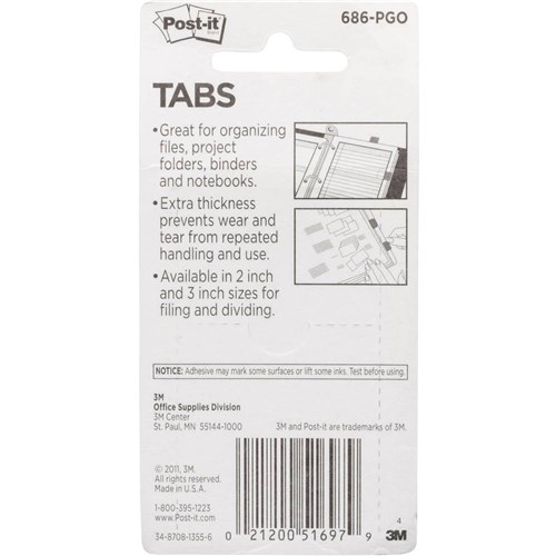 • 22 tabs each colour, 25x38mm (686-RYB, 686-PGO, 686L-GBR & 686L-PGO only).