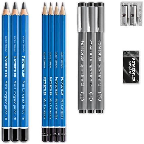 • Pack includes the following: Mars Lumograph 100 & Mars Lumograph jumbo 100J to sketch the baselines of the artwork and draw gently light pencils strokes