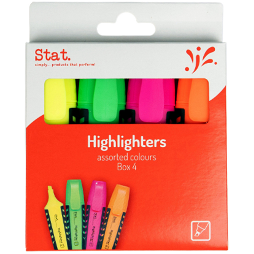 Stat.Highlighter Chisel 2-5mm Tip Rubberised Grip Assorted Wallet of 4