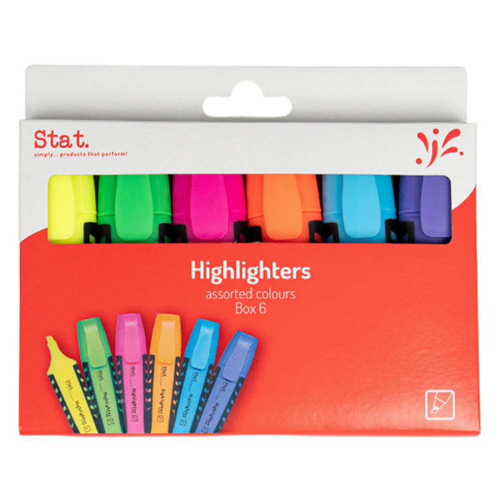 Stat.Highlighter Chisel 2-5mm Tip Rubberised Grip Assorted Wallet of 6