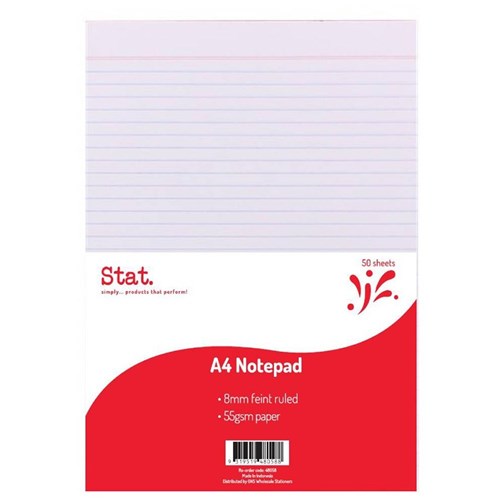 Stat.Notepad A4 8mm Ruled 55Gsm White 50 Sheet