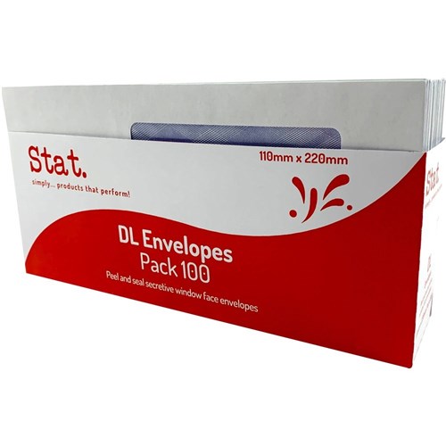 Stat.Peel And Seal Envelope DL Window Face Secretive White Pack of 100
